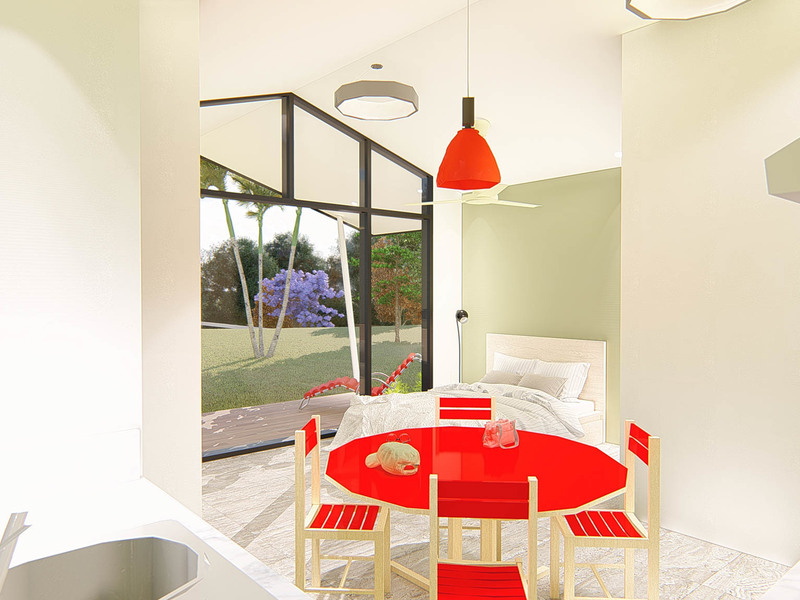 Casa Teca comprises a loft-style main room, seamlessly integrated with a kitchen and dining area, a fully equipped bathroom, a spacious closet, a convenient laundry room, and an extraordinary terrace that overlooks picturesque gardens and the majestic Parrita mountains.