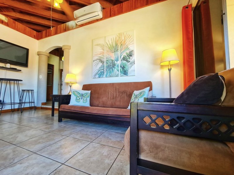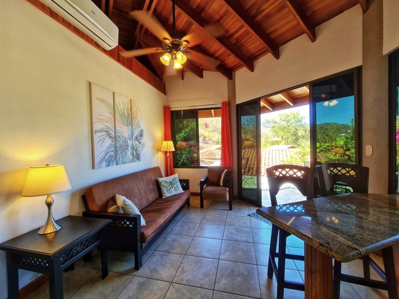 This cozy 2 bedroom, 2 bathroom condominium is located in the exclusive gated community of Hermosa Heights in beautiful Playa Hermosa, Costa Rica. The Hermosa Heights development is one for the whole family, offering amazing amenities including a swim up bar, pool with water slides, mini golf, on-site spa, movie theatre, basketball court, and restaurants. With a natural tropical surrounding, and a comfortable spacious interior, this unit is perfect for a fun and relaxing family vacation.