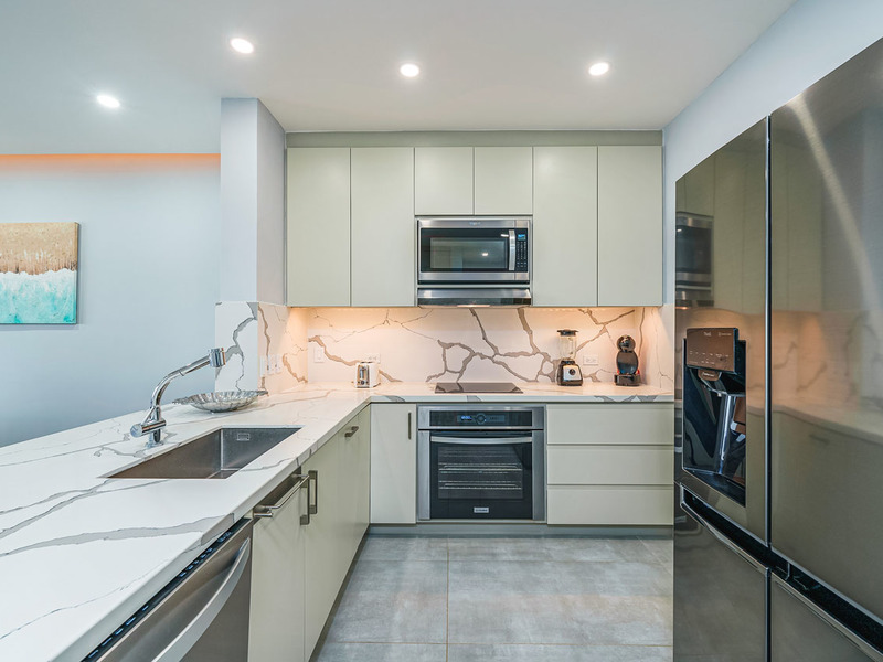 Its stunning views are only part of the picture - the condo (2BR/2BA, 1300 sf) has been completely upgraded through a remodel project that resulted in one of Flamingo's best contemporary condos. Walls and cabinetry were removed to create perfectly open spaces; a modern aesthetic was executed in style, from the core to the high-end finishes, smart appliances and custom cabinetry.