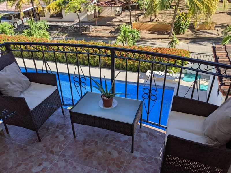 Overlooks the Pool which hardly ever has loud noise