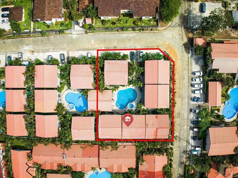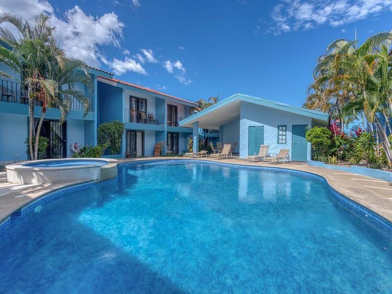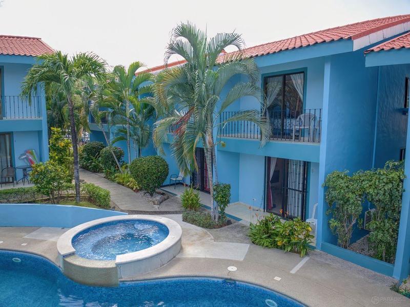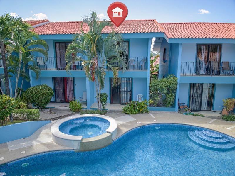 Villa Riviera can be found in Playas del Coco, Las Palmas. Las Palmas is a well-kept community with numerous residential community complexes. The building's façade has just been repainted. The pool is in the center of all of the condos.