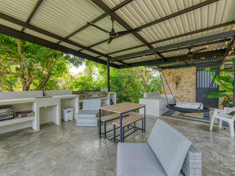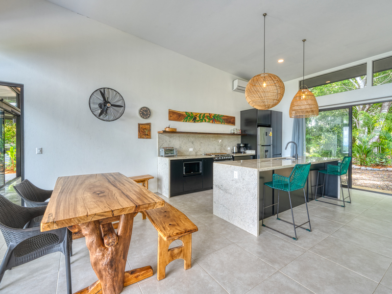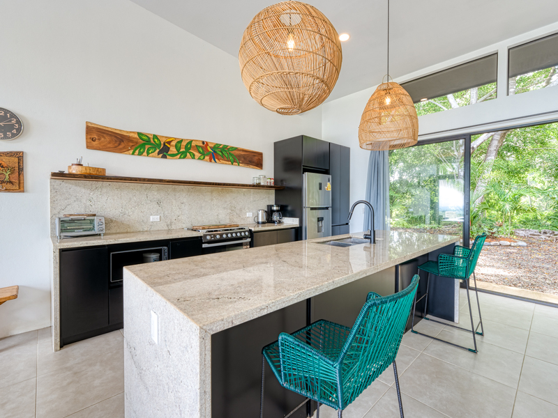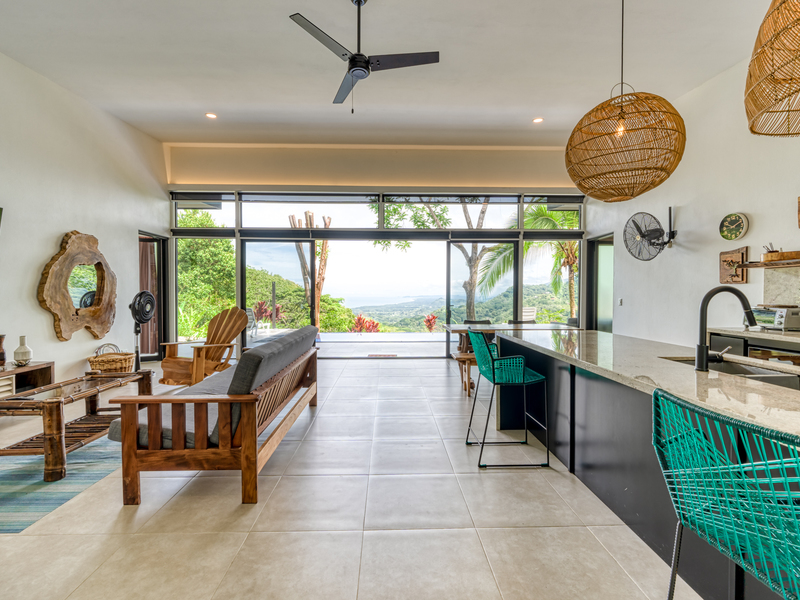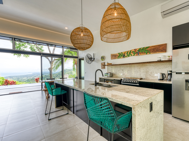 Discover your dream home in the highly sought-after Lagunas neighborhood. This exceptional gated residence offers two bedrooms, two baths, and breathtaking sunset ocean views that will captivate you all year round. Situated atop a hill, the property provides an uninterrupted vista that spans the entire coastline, extending all the way to the enchanting Manuel Antonio Islands. Immerse yourself in privacy as there are no neighboring homes within sight—only the serene embrace of lush, ancient jungle.