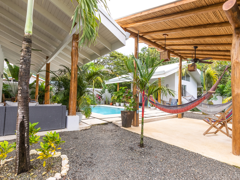 Private residence with private pool and a fantastic income-generating rental! This property is incredibly versatile allowing the owner to live in one unit and rent the other or rent both units separately. If you prefer a private residence this property also works great as a private family compound. All walking distance to the beautiful picturesque beach of North Pelada. This detailed eloquent home was built just a couple of years ago by one of Nosara's local builders whose attention to detail shows in every corner of this fantastic property. Designed with a large kitchen the master unit looks out to the shared pool with a large covered patio. Relax in the afternoons listening to the sounds of the ocean or take a plunge in the crystal clear pool! Additionally, this wonderful property has an elegantly designed and decorated guest home that can be used as a vacation rental if desired! Don't forget about privacy and security. The home was built with a large privacy wall that runs the perimeter with a large entry gate by the road. In the design, the owner added a pedestrian gate as well which is great when friends, family, or guests are visiting and want to head out for a walk to the beach! Both structures were designed to allow easy expansion in the future if desired. Contact us to coordinate a visit to learn more about this great location here in Playa Pelada right by the beach!