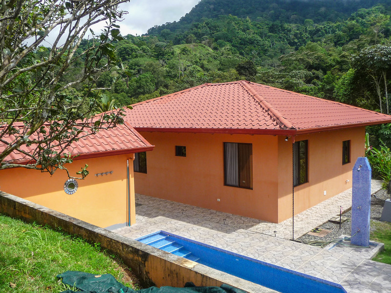 Large 360-degree ocean view building area with a Mountain View guesthouse and pool is available for purchase. Build your dream Ocean View house while living in the guesthouse. This property is 3 kilometers from the Coastal Highway through the village of Tres Rios. The guesthouse is built by one of the premier builders in the Southern Zone and comes fully turnkey (just bring your suitcase). The upper building site is large with a 360-degree view and is ready for your dream house. You can hear the water flowing from the creek below. The property has been landscaped with tropical plants and fruit trees.