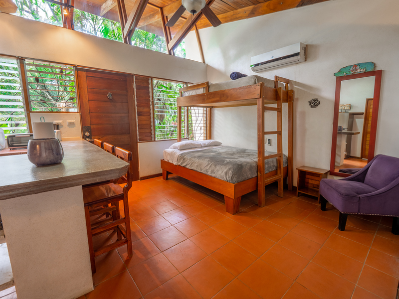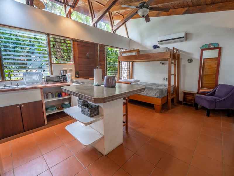 Nestled in one of the most convenient locations in Nosara, this duplex-style home is situated near Cafe de Paris and Organico Marke. Tucked away from the main road towards Playa Guiones, this private and jungly set-up offers a peaceful retreat. The main surf break, Bodhi Tree, and other local attractions are within walking distance via the many nature trails alongside and close to this great location.