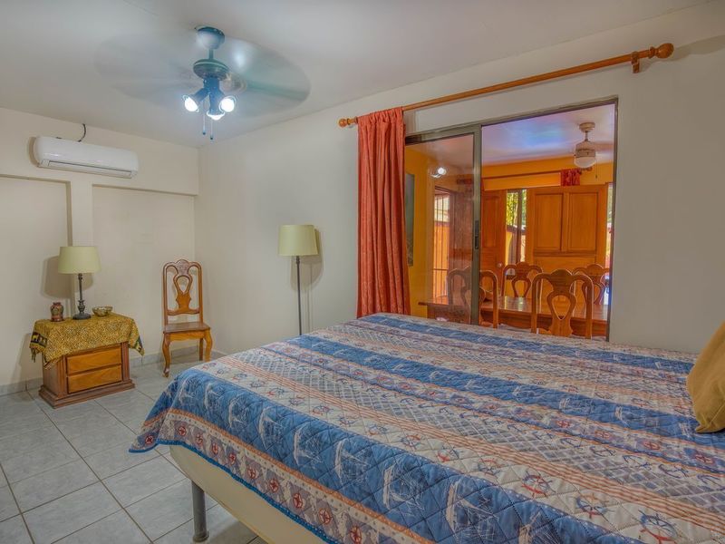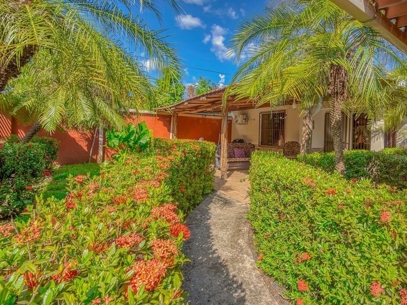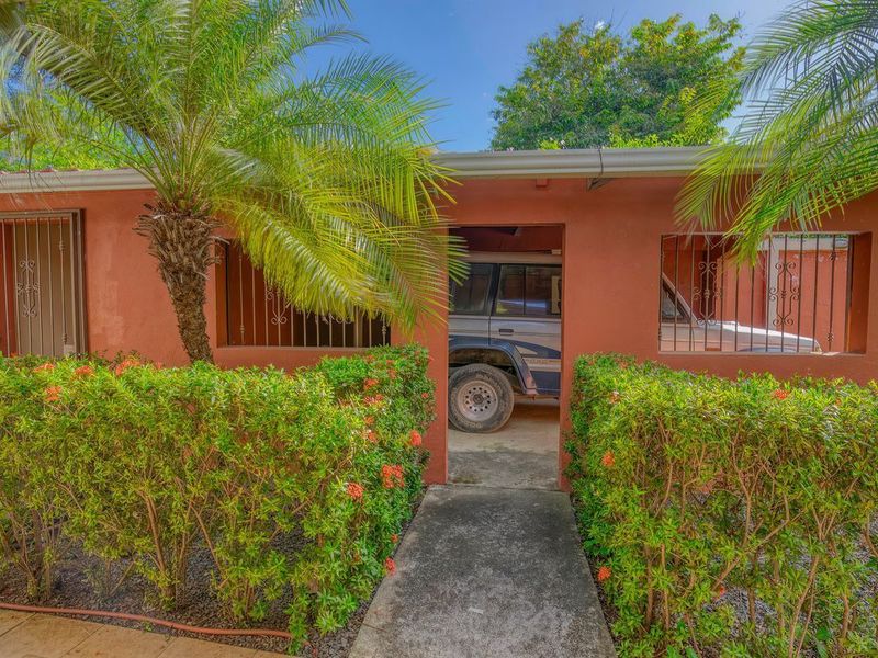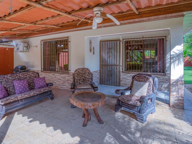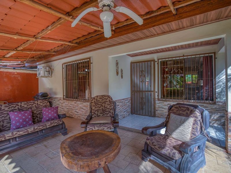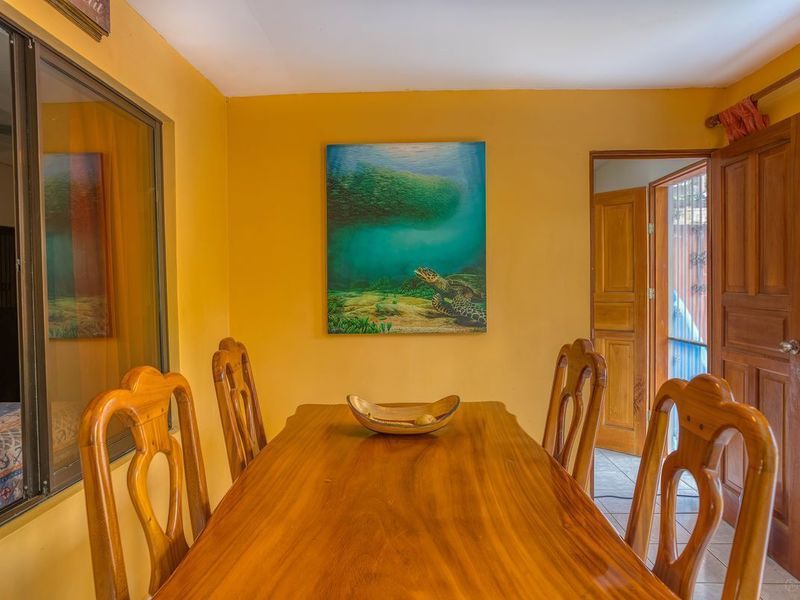 Casa Casablanca provides a private living space from your neighbours in a friendly neighbourhood, if you choose to step out and say hola. This is a charming 2 bedroom 1 bathroom bungalow with the ability to expand the space to suit your wants, with over 400 ft2 of land total. All the plumbing and electrical lines are set up in the backyard for a future laundry room and kitchen / BBQ rancho area. The septic system has been recently re-done according to code. Inside next to the kitchen there is a laundry / storage area with the rough in for another bathroom to be built in the future. DescriptionCasa Casablanca is a two bedroom, one bath house located in the Segovia Neighborhood next to the gated community of Mossy Rock in Playas del Coco. The house is situated towards the end of a non-throughway street and the neighbours are a friendly mix of mostly generational locals who have been here contributing to the community and growth of Coco. The front yard has an extended covered veranda and the yard is landscaped with local flowers and fauna. There is a covered garage port and 2 bodegas for storage. The house has high concrete walls surrounding the perimeter with a sliding gate at the front for access. It is 1 mile to downtown Playas del Coco and the beach, 1100sqft under AC plus covered front terrace. Kitchen cabinets are custom made from hardwood with granite counters, fully equipped and furnished. Nice grassy backward with plenty of space for a pool!