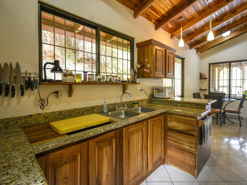 Built in 2011 and 2013, both houses are one bedroom, one bath with a modern kitchen and eating area. Casa Mango sits at the front of the property and walks out to the covered patio that includes a sitting area as well as an outdoor sink and barbeque. Casa Banana sits higher on the property, is slightly larger than Casa Mango and includes A/C in the bedroom, a washing machine as well as a nice-sized pool. Solidly constructed with teak ceilings, doors, and trim, and aluminum sliding windows with security bars, both houses are being sold fully furnished and equipped.