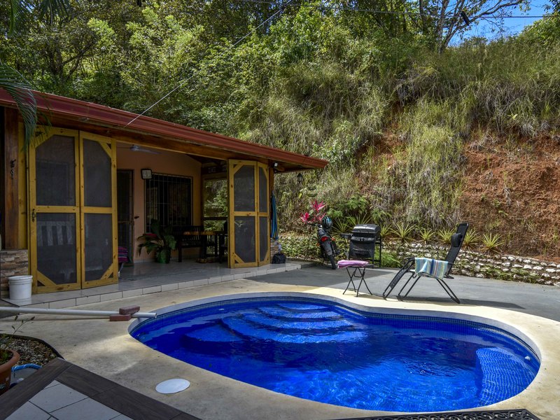 Looking for a private jungle home but close to town? Casas Mango & Banana is the answer! Located in Cuesta Grande, a short 15 minute drive to Samara, this quarter-acre property is just five minutes from the popular Belen Waterfall and includes two small homes nestled into the hillside providing plenty of privacy without sacrificing convenience.
