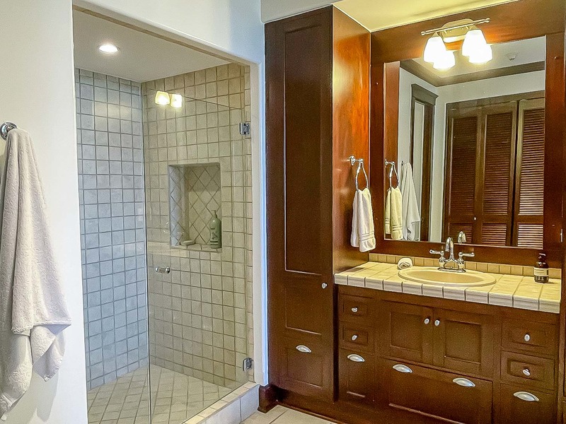Vista Bahia 3B’s floor plans are divided into three bedrooms and three bathrooms, each with spectacular ocean, mountain and resort views, as well as a high-end kitchen, and spacious living and dining areas. The first floor boasts the living area and a guest bedroom, while the second story hosts two additional bedrooms with their own, grand ensuite bathrooms. The master bedroom has its own large ocean view balcony, from which the best sights in the whole resort can be appreciated.