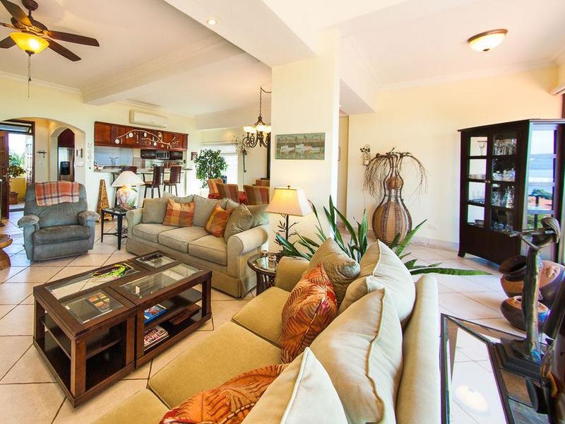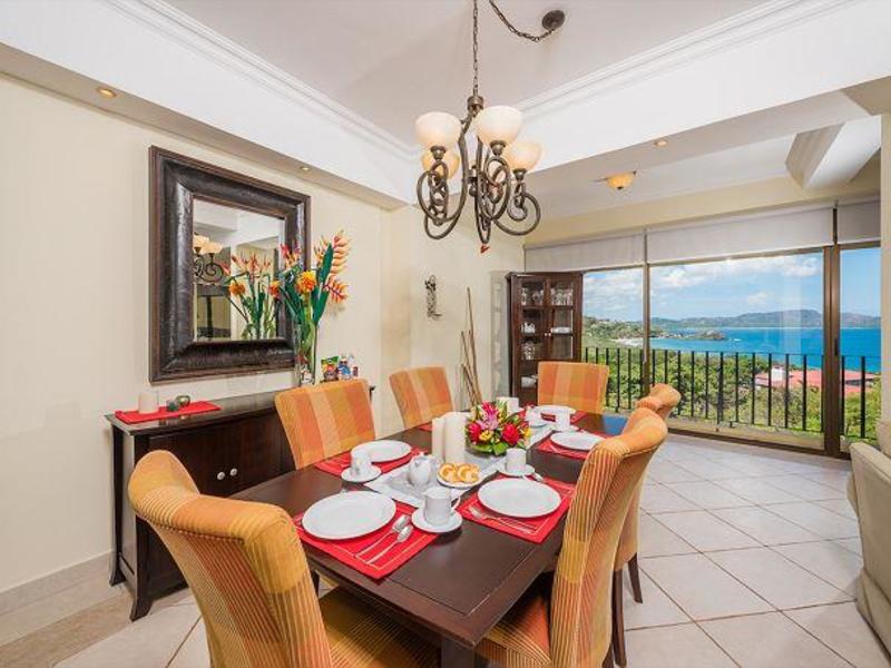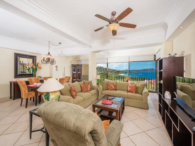 This huge and well-appointed 3-bedroom / 2-bath beach view condo is appropriately named Presidential Suites. Presidential Suites is a luxury apartment complex on Playa Flamingo's North Ridge, among numerous wealthy multi-million dollar houses. Flamingo is situated on a peninsula with breathtaking views and one of Costa Rica's most gorgeous white sand beaches. When guests enter this stunning property, they are drawn to the incredible ocean views through floor-to-ceiling windows. Waves can be seen breaking around Flamingo Beach! The large living dining area is ideal for entertaining and can fit a 10-person dining table. The kitchen has a breakfast bar where you may relax and chat with the chef. There is also a spacious terrace where you may relax and watch the sunset. Currently, the third bedroom serves as an office. The complex offers a huge community pool with views of the ocean and Playa Flamingo. Excellent restaurants, bars, and supermarkets are all within walking distance. -TV