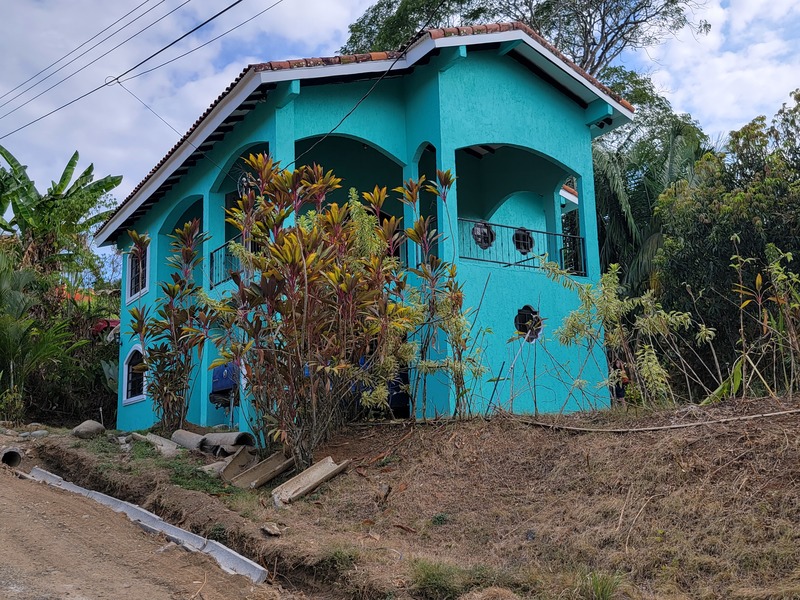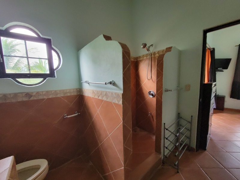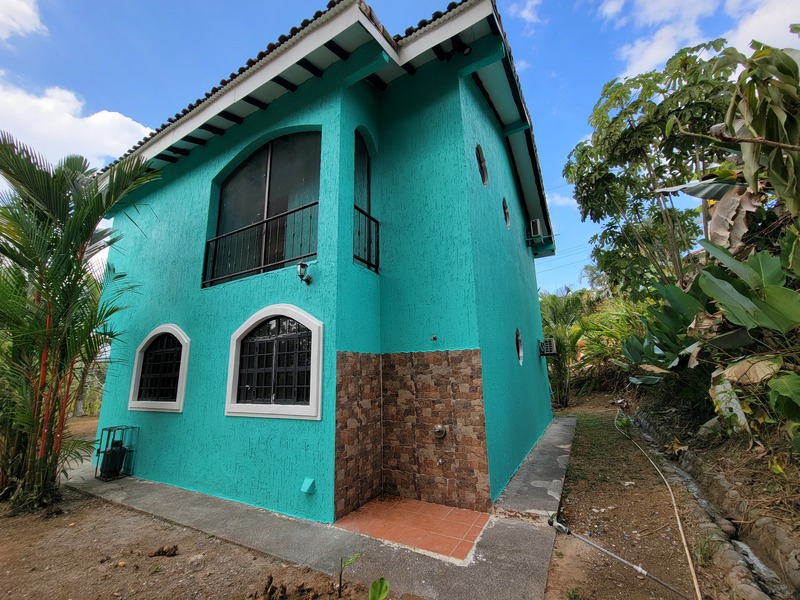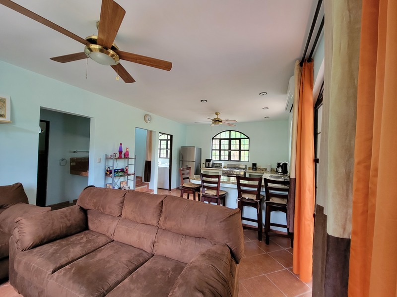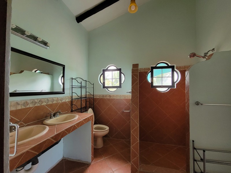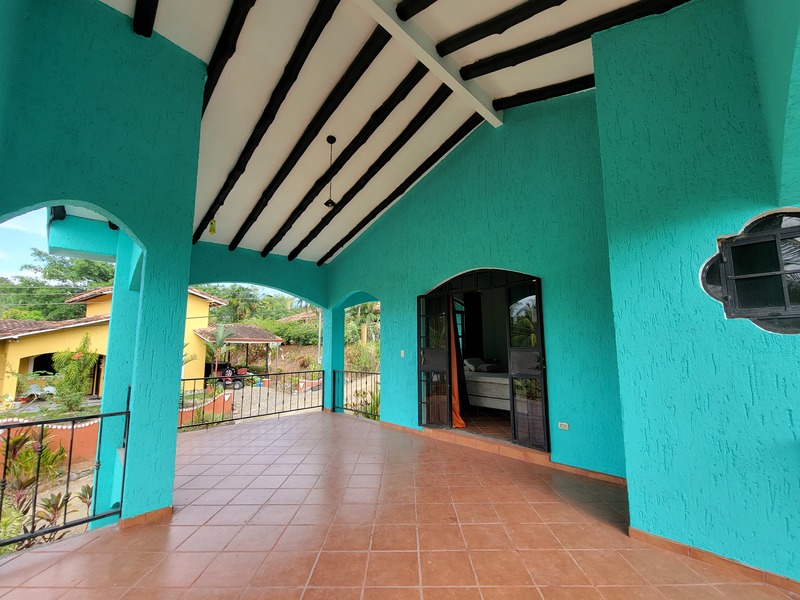 This spacious home features a large kitchen with granite countertops, two master bedrooms each with en suite bath upstairs, another guest bedroom and bath downstairs, a laundry room, carport, storage bodega, two upper balconies, including a huge entertainment deck upstairs where you can sit and enjoy tropical birds flying by and the beautiful mountain and ocean breezes as the community sits just a short distance from the shoreline with rainforested mountains surrounding it in the near distance.