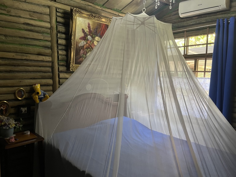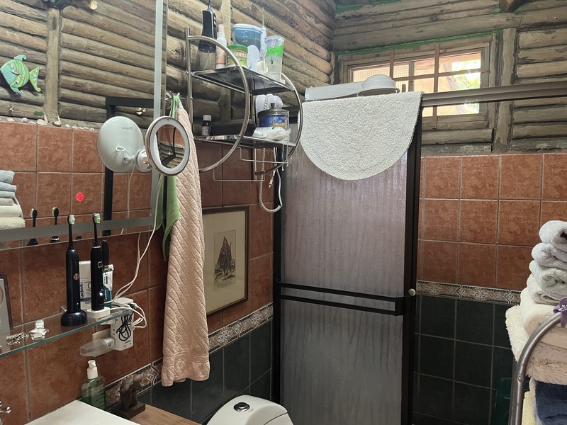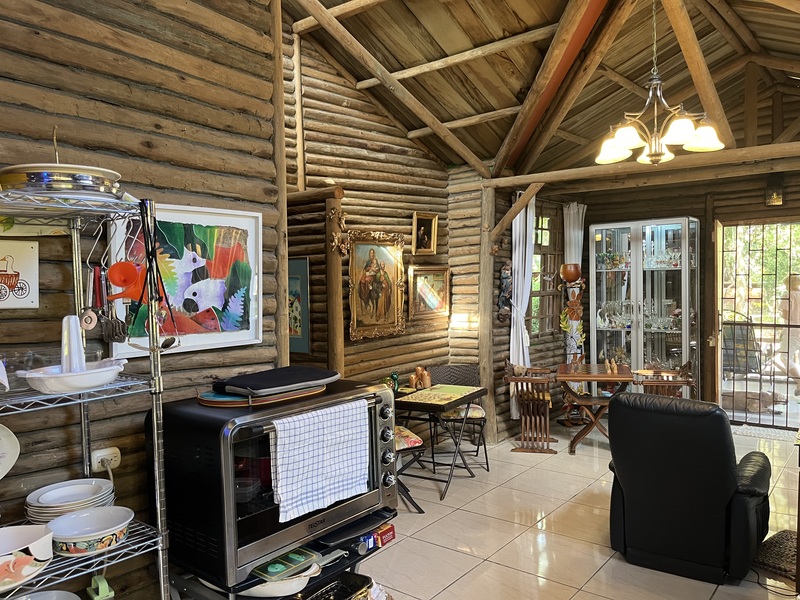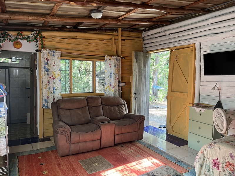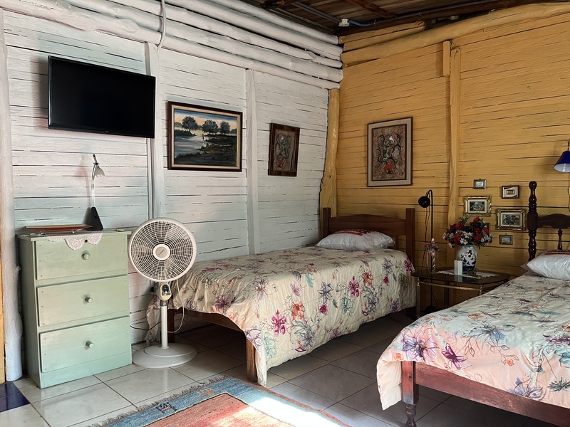 The main living area consists of two rustic houses. The first home is solid cement-block construction, combined with rustic wood elements on ceilings. The house measures approximately approx. 90 sqm, and has 2 bedrooms with air conditioning, kitchen/living room, shower/toilet, high ceilings, and a covered terrace. The guest house, measuring 35(ish) sqm, tiled, with shower/toilet.