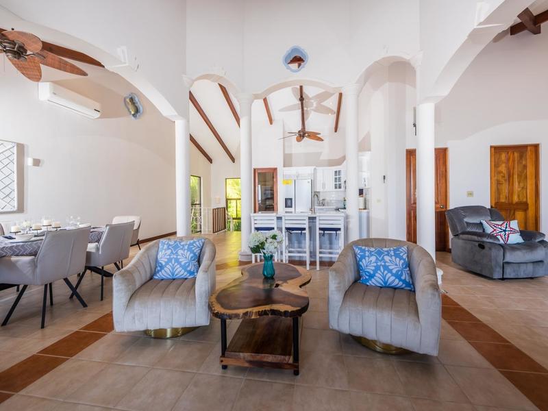 Welcome to the recently remodeled Villa Catalina #7, where the blues of the ocean and the sky and the green of the surrounding jungle intermingle with the tropical breezes as they flow through the open living spaces of this meticulously maintained Costa Rican home. Private and secure, this large two-story 2840 sq ft villa has 3 bedrooms and 3.5 bathrooms, with two living areas, a fully equipped kitchen, laundry, and an oversized garage for all your beach gear. Here you will have access to luxury living, incredible ocean, and Catalina Island views, and several pristine beaches located just a short walk away.