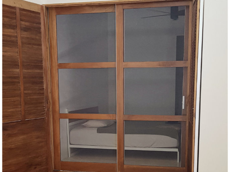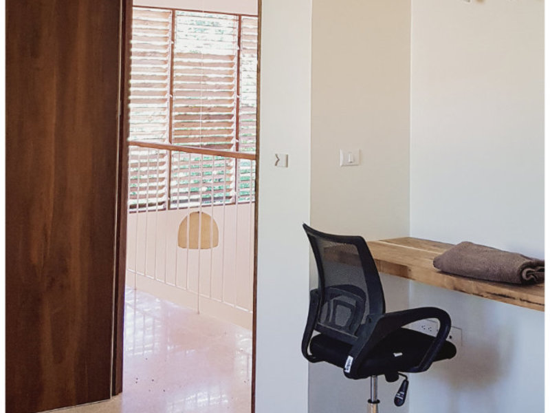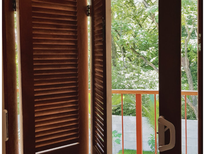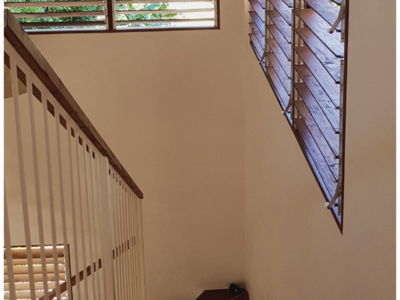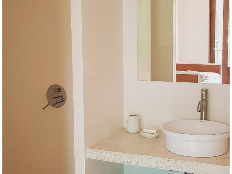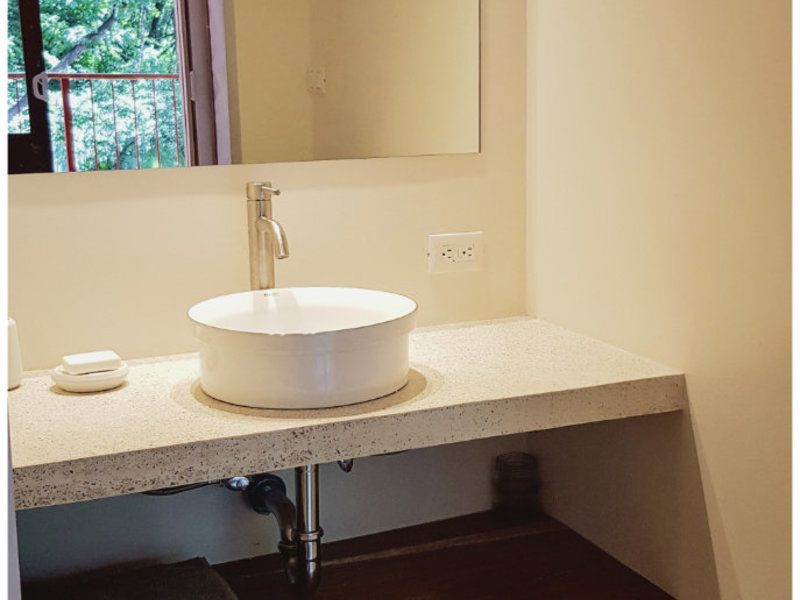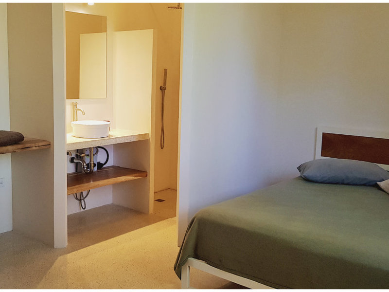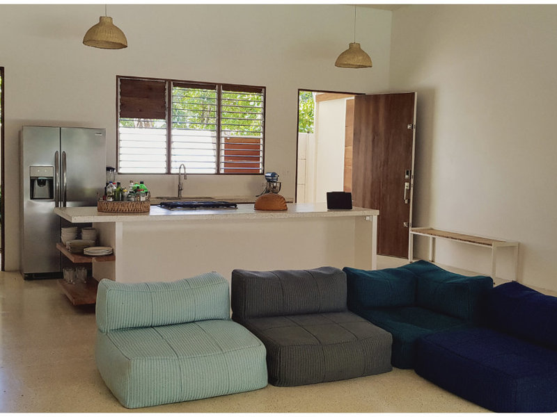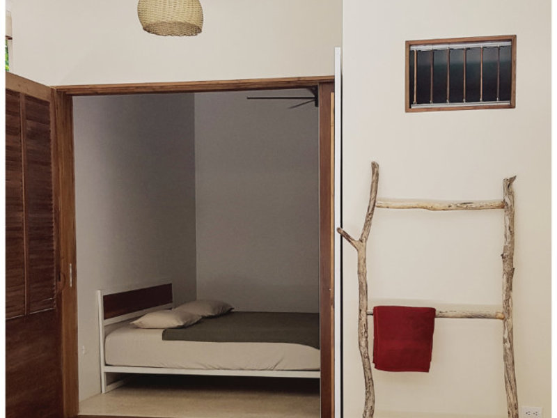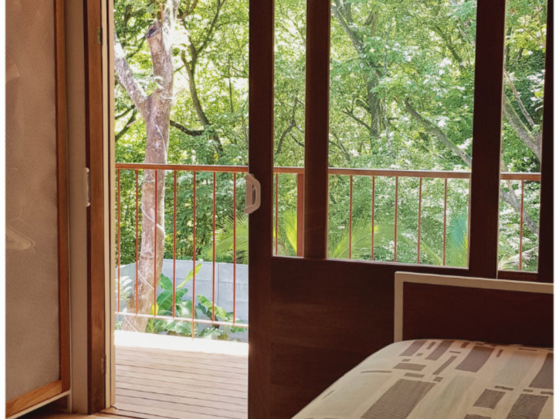 3 rooms of about 16m² with their own bathroom (2 on the first floor and one on the ground floor). One of the two bedrooms on the first floor opens onto a 25m² balcony with a view of the jungle and its fauna (monkeys, birds, iguana...), where you can practice yoga in a quiet and ideal setting. On the second floor there is an open space of 25m² opening onto a void on the living room, which can easily be converted into a 4th bedroom.