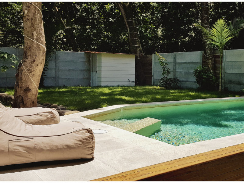 The house offers great amenities on a 450 m² fully fenced plot. You are in the village but in the heart of a lush jungle at the end of the road, all close to the sea (350m) that is to say all that one needs in Costa Rica.