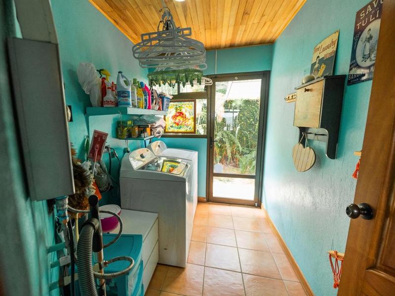The third part is in a lower level, it features 2 avocado trees, several citrus trees and some other species such as palm trees, papyrus, and exotic plants. At the bottom of this last section which is also surrounded by a hedge of hibiscus, there is an gate which leads you to a public dead-ended road used by local farmers.