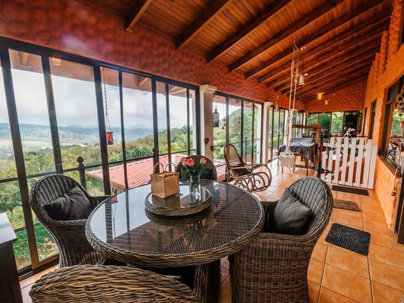 - Throughout the back of the house you have a huge covered and closed veranda where 6 huge French screened windows allowing you to leave all this space open in order to enjoy the great outdoors and birds like hummingbirds, green parrots, toucans and many other. The interior terrace has enough room for you to get it set for many different things, there is room for yoga, a mini gym, a dining table and more.