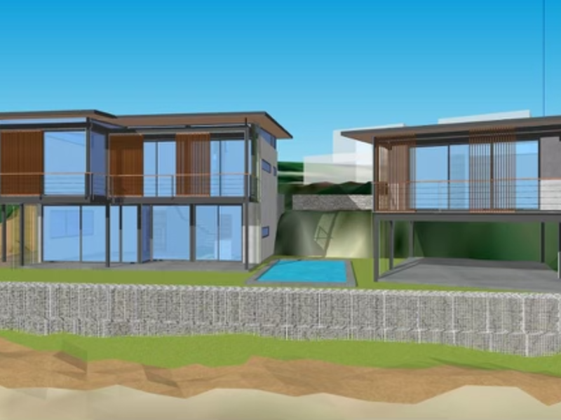 This listing consists of 3 villas with stunning views of the coastline and ocean. Each villa includes one bedroom, a kitchen, and a bathroom. Two of the villas share an infinity pool while the other villa has its own private swimming pool. Below the infinity pool there is an existing building site that holds a plethora of potential for future development.