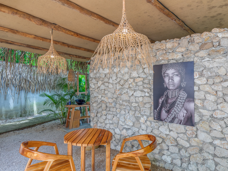 -Bohemian Mediterranean décor personalized according to the bubble with designer furniture made by local artisans.