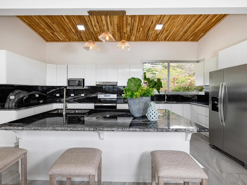 This property also has a wall-mounted flat-screen television, a spacious island with a sink, and a large-capacity refrigerator to meet all of your needs.