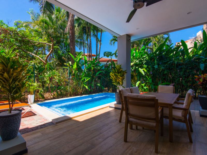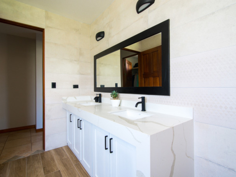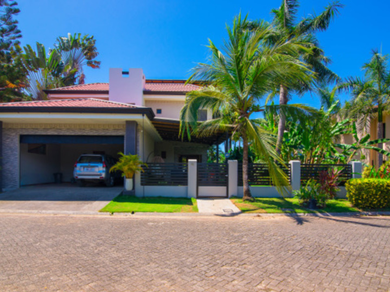This beautiful waterfront gated community Hermosa Palms is located on Playa Hermosa. It has a community pool, swim up snack bar & spa. Walk to the beach and surf the waves right from your home. Casa 99 has 4 bedrooms. 3 on the second level and 1 on the main level. The main level bedroom has its own private fully renovated 3-piece bathroom and access to one of the 3 patios. The Primary Bedroom is on the second level and has its own private fully renovated 5 piece spa like bathroom oasis and walk in closet. The primary bedroom has access to the large office and gym space. From the office you find the stairs to the Roof Top Patio with views of the Ocean and Mountains. It is absolutely breathtaking. The second level also has a lounge area with sofa and tv outside of the bedrooms. Bedroom 2 & 3 share a 3 piece fully renovated bathroom. The kitchen has been newly renovated with new cabinets, quartz countertops and new appliances. Kitchen and living room open concept. 2 piece Social Bathroom on main level. New Front Entrance Door. New Fans in All Bedrooms & New Commercial Fans in Outdoor Patio Areas. 3 Covered Patio Areas. One at Entrance, One by Pool, One on Rooftop. Great for Entertaining. Fully fenced in yard. 2 Car Garage with Built in Organizer. Covered Garage for Surf Equipment, Sports Equipment etc. 2 Outdoor Showers. New salt water pool. New Astroturf (no lawn to cut). Fully Furnished, turnkey.