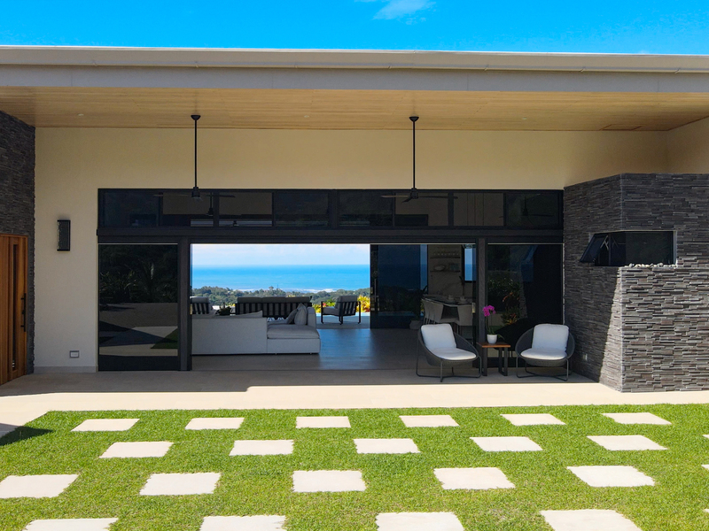 Expansive Nano glass doors opening to the mountain and ocean views