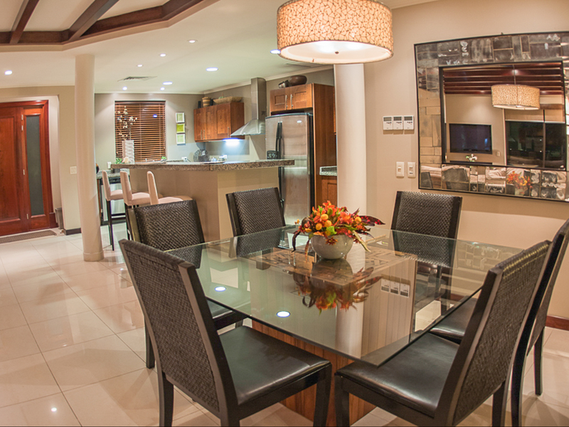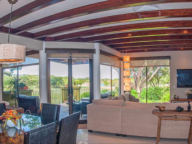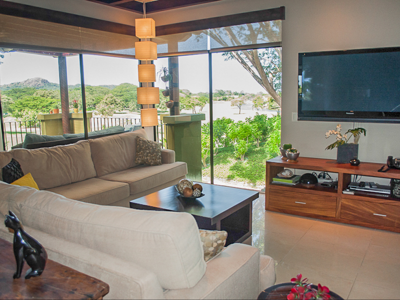 Villa Carao #5 is a contemporary two story duplex with 4 bedrooms, 3 bathrooms, office and a private pool within the best beachfront luxury gated community you can find in Guanacaste, Costa Rica. Reserva Conchal is well known for its world class amenities and infrastructure! That entry-level of this villa hosts a great size kitchen integrated with the dining room and living room. The big master bedroom and the bathroom have an amazing skylight, making every shower a unique experience! There is also a great size office with a pull out couch, the desk facing the 10th and 18th fairway will make it tough to work! The entry level has also a gorgeous terrace, perfect for afternoon drinks or morning coffee. Walking downstairs you'll find two en suite bedrooms, an entertaining area and lots of storage! One of the bedrooms have a queen bed that suits perfect for extra guests. The main downstairs area leads to the outside where you will enjoy the breeze and the views on the covered terrace, delight your guests with a BBQ or hang a hammock for a nap! The swimming pool is of great size, making pool laps a possibility.