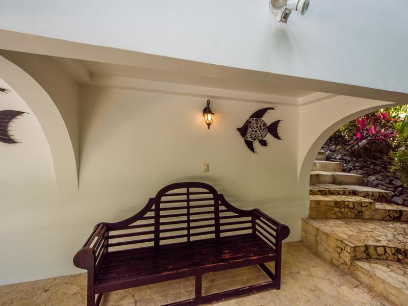 The pool area downstairs doubles as a spacious outdoor living area. There is a BBQ area, pool chairs, and plenty of storage space here. Ideal for entertaining visitors. The staircase leading to the private beach is located directly in front of the pool. This feature is actually what elevates Colibri to the next level. Having the warm white sands, and crystal clear pacific water only a few steps away. This is the regal lifestyle that Colibri offers. Not to mention the fantastic snorkeling nearby. Caves, tunnels, and reefs teeming with tropical fish are right outside your door!