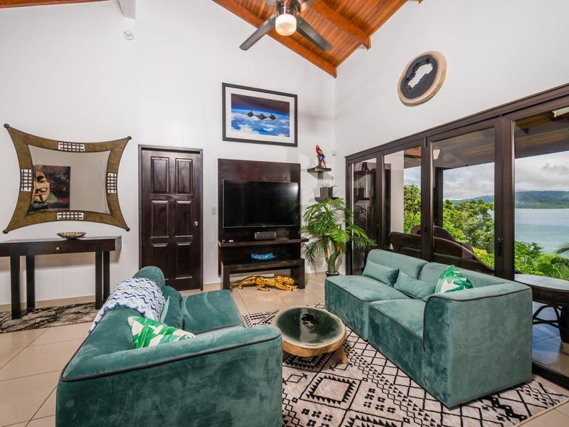 This 4 bedroom, 3000 square foot home has an open concept main room that connects the kitchen, living area, and terrace, allowing for fresh beach breezes and plenty of natural light. The dawn, which faces North East, is one of the many sights that can be seen from all living areas and bedrooms on a regular basis. With the fresh ocean air cross-ventilation, air conditioning is optional to reduce heat retention. The master suite is on the main floor and looks out over the private cove with breathtaking views of the Pacific Ocean. This retreat has been designed with every detail in mind, with a king bed, modern furniture, and direct access to the terrace.