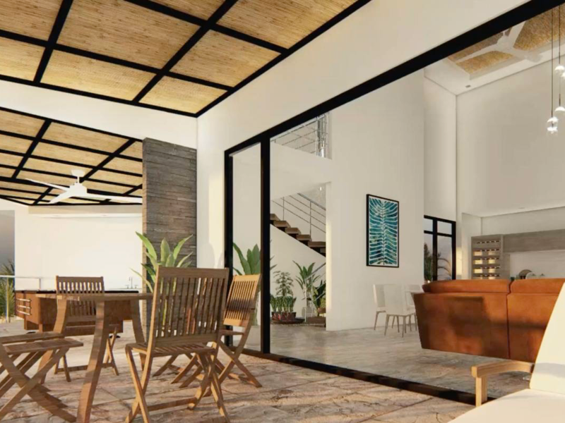 The second level has 3 spacious rooms, each with a full bathroom and one of them with a large walk-in closet as well as an office area within the same room. These rooms are characterized by having beautiful balconies with the most incredible views to read a book or have a glass of wine while enjoying nature and the nightly sunsets.
