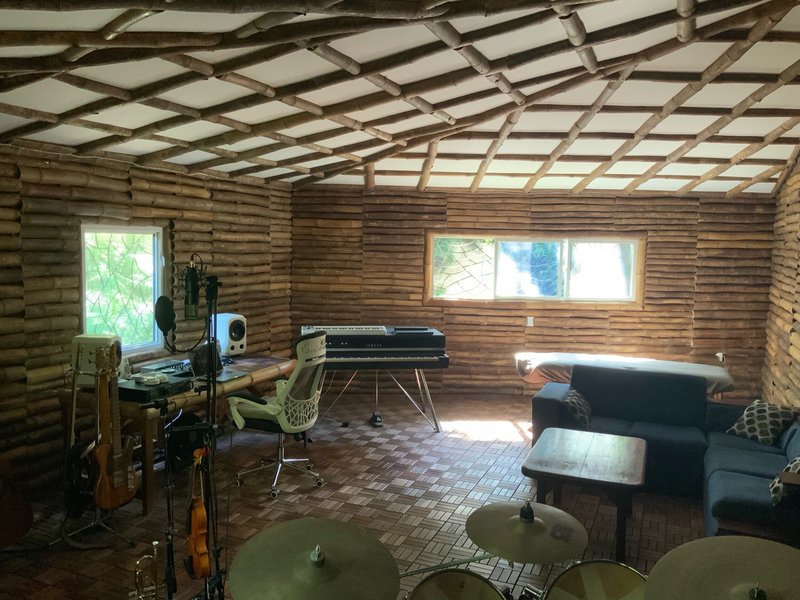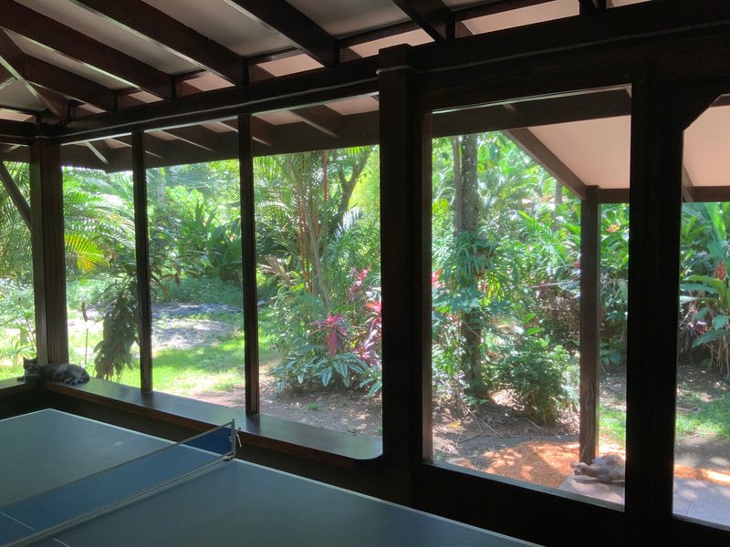 This is a four-bedroom, two-bathroom house with a large bonus room and additional sun porch. Designed to maximize the space and create a relaxing, tranquil getaway. The interior design features including; front door and shelving are made from bamboo that was grown and harvested on the lot.