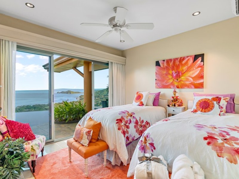 Built in the cliffs of Playa Hermosa, Casa Dare to Dream boasts one of the most amazing ocean views in the country. This five bedroom, 5 bath home overlooks not only the town of Hermosa itself, and the famous Hermosa Beach, but also the entire bay. From this magnificent home, you can see the Papagayo Peninsula (home of the Four Seasons Hotel), the famous surf spot of Witches’ Rock, and even, in the distance, the country of Nicaragua. Located in a prestigious established community of Hermosa Heights, steps away from the beach, restaurants and shopping. The development has a movie theater and a mini golf course. Liberia International airport is only 25 minutes away, and San Rafael Hospital is 30 min. away. The town of Playas del Coco with all the major shopping, services, and night life is less then 10 min. away. Enjoy the beautiful blue flag Hermosa Beach only steps away from this magnificent ocean view home! Contact us today: Tony & Anna Velez, Tony @coldwellbankercr.com, +506-8485-1469 Whatsapp, +1-206-8485-1469 US/Canada text/call.