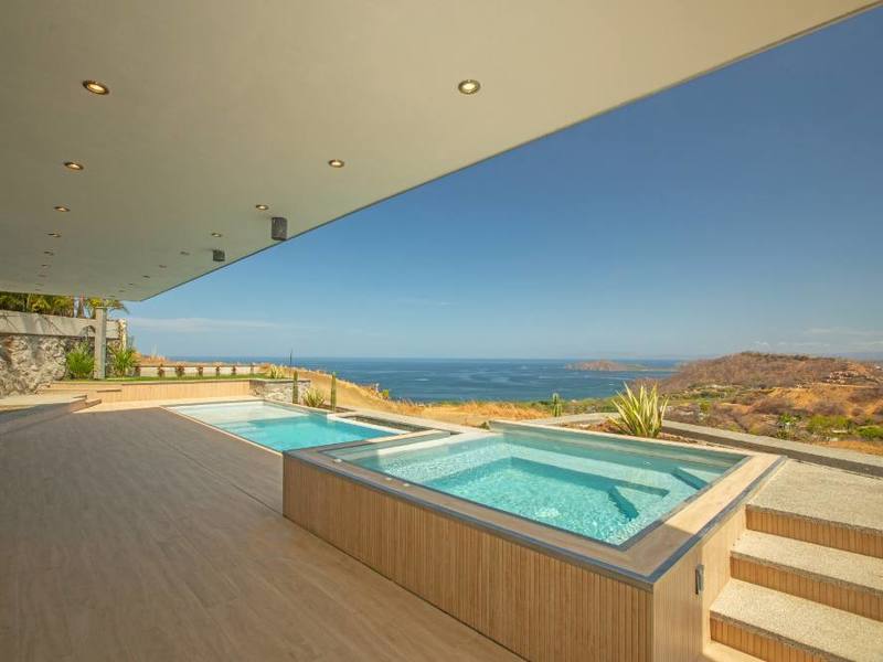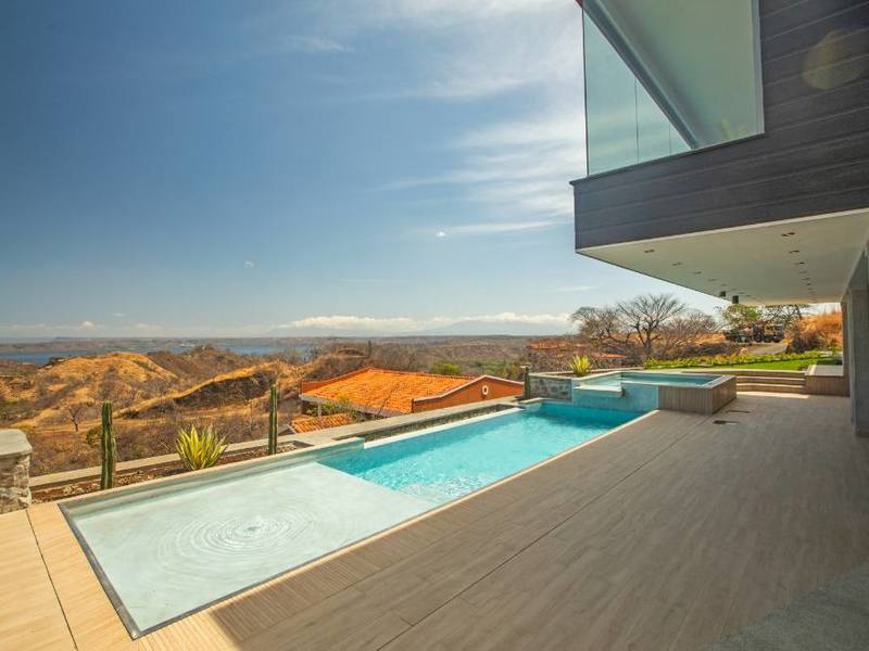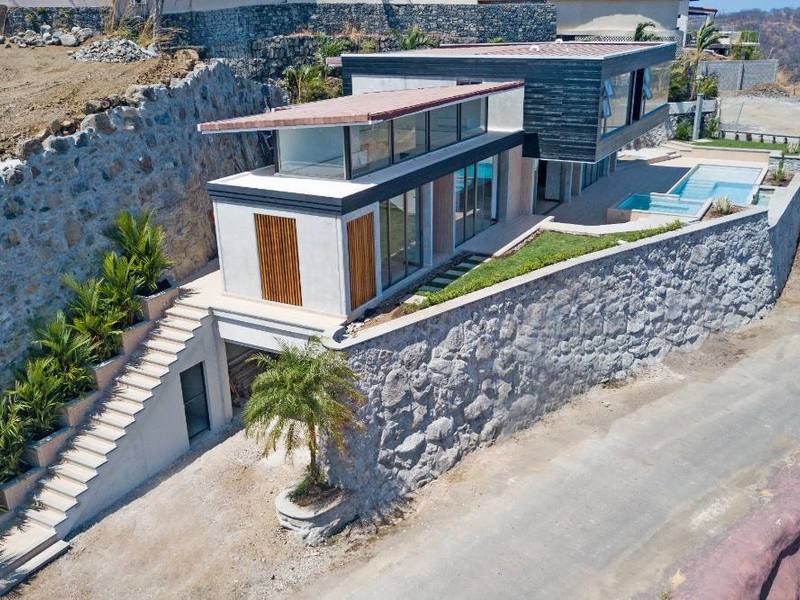 Hermosa Heights development sits in the perfect spot close to the beach and all the amenities. This beautiful 5-bedroom and 4-bathroom home is almost done with the construction phase and is ready for a lucky first owner to move in! Its modern architecture combines exposed concrete with organic elements to create a beautiful juxtaposition of elements showcasing contemporary and essential living. Every space has been thoughtfully designed to make nature a protagonist, from floor to ceiling windows presenting amazing ocean and volcano views to the interior gardens that fade the outside-inside boundaries. The stylish hand-picked details and finishes, including top-quality ceramics, water and bathroom fixtures, and fine woodwork made by Costa Rican carpenters, tell a perfect story of organic elegance. The spacious kitchen features a large island with a breakfast bar, custom wood cabinetry, and stone countertops. The kitchen and dining area opens to the jacuzzi and large pool with a tanning deck and LED lighting, ideal to entertain day or night. Three large bedrooms are located on the second floor. The master bedroom includes an en suite bathroom and breathtaking sunset and ocean views. Additional multi-purpose space on the first floor offers flexibility for a hobby or game room or an additional bedroom if necessary. Located on one of the highest lots in Hermosa Heights, the property offers unbelievable views of Hermosa Beach and the Gulf of Papagayo. Hermosa Heights is a 45-acre development and residential community with minimal disruption of the surrounding natural beauty. At the base, a retail area with one of the most exclusive spas and the only cinema in the Papagayo area offer residents a full array of services. Just 20 minutes away from the Guanacaste Airport, Playa Hermosa is an important touristic destination home to boutique hotels, convenience stores, wellness centers, and exquisite cuisine. This property and its location is perfect for anyone looking to seclude in nature while enjoying all comforts.