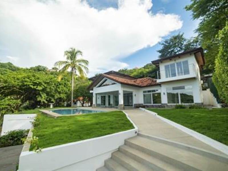 Rare Ocean View and Walk to Beach Home with 5 Bedrooms, 4 Bathrooms in Coveted Ocotal Beach. This large ocean view home sits on an estate-sized lot of almost half an acre (1,762 M2) and measures 4,500 SF inside AC with a total of 7,101 SF including the terraces, pool, caretaker apartment and detached garage/bodega. This totally upgraded home has marble fl ooring and granite counter tops along with custom cabinetry. On the main floor is a large great room that houses the kitchen, large pantry, dining area, and living room with wrap-around windows and vaulted ceilings looking out to the stunning ocean view across the large pool and mature tropical gardens. Also on the main floor are 3 bedrooms and 2 bathrooms, all with great ocean views, one with a large ensuite bathroom. There is a large pool with massive front and side gardens along with a large parking area. The upper floor has two large ocean view bedrooms and 2 bathrooms, each with private covered terraces. Perfect for a vacation rental property or large family home w here you can earn rental income and still enjoy it on a well deserved holiday. In the coveted Ocotal beach community you are surround ed by high end homes and have the famous Father Rooster Bar and Grill for a sunset cocktail and meal. Ocotal is a bedroom community within close driving distance to Playas del Coco where you will find all the services, restaurants, nightlife, water sports, and shopping you will ever need. Move into your dream home you desire to enjoy on vacation or in retirement or earn rental income while you plan for your move to Costa Rica. Only minutes to various beaches, within quick proximity to the Liberia Airport and various private hospitals and clinics. Come join us today.