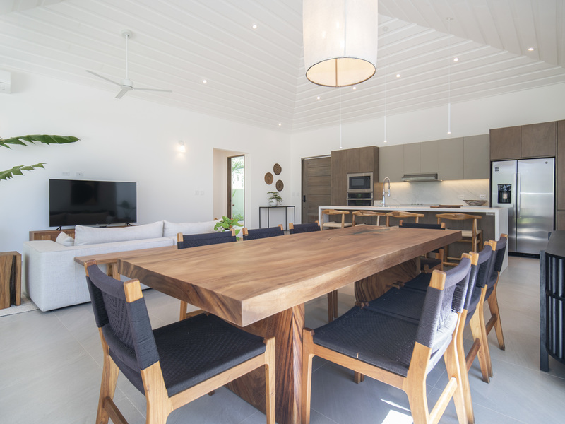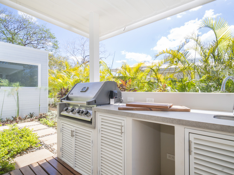 This spacious home features a great room with an indoor-outdoor feel, vaulted ceilings and kitchen with a large island. One of the main features is the ample deck area with a pool that connects the main house with a separate guest house equipped with two bedrooms, each with their own bathroom, a common kitchenette and a lounge area. Escape to your own tropical oasis at Tamarindo Park where you can live a life in harmony with nature. Inside Casa Matapalo, you’ll find large windows that merge the spaces allowing you to feel completely surrounded by the luscious garden area that enfold this home. The space within the home feels contemporary, with a spacious open floor plan and a neutral palette. However, as you venture outside, you’ll find a true slice of paradise nestled between the main house and guest house, here the one-of-a-kind deck area is the not so hidden gem of this home. Enjoy the sounds of a waterfall and let your senses take over as you lounge, relax, and cool on a relaxing deck area with a sparkling pool.