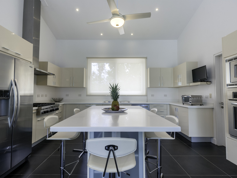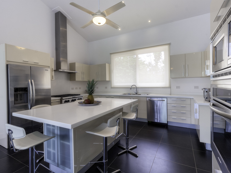 The social areas with floor to roof windows and triple height ceilings are designed in open floor concept, to maximize the connection of family gatherings and everyday routine around the kitchen, living room, and dining room and pool areas. The imported Italian designer`s kitchen cabinetry comes with Corian countertops, double oven, dishwasher, professional stove, top of the line refrigerator, and a huge pantry.