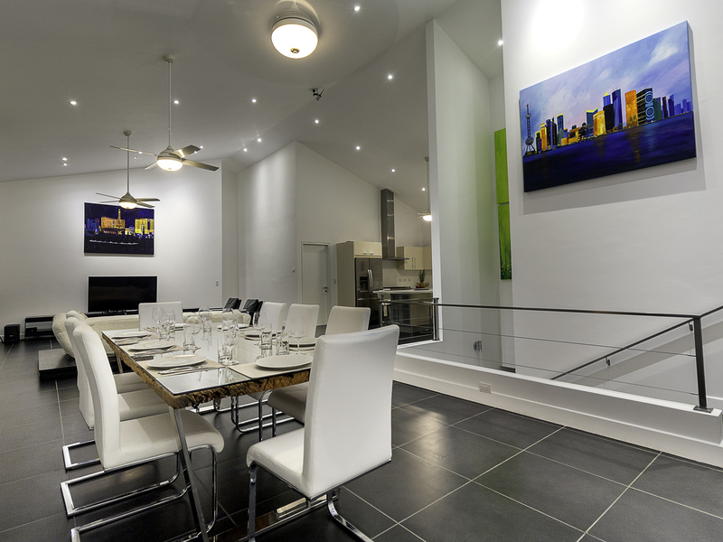 A nice concrete bridge separates the main entrance from the rest of the property, giving an added sense of privacy and security. The main house is located on the hill and the construction was adapted to the shape of the terrain. Generous parking facilities and a garage for three cars welcome you to the main house with 1,100 m2 of under-roof construction area. The house opens to the terraces, decks, and balconies, in the best expression of indoor/outdoor living.