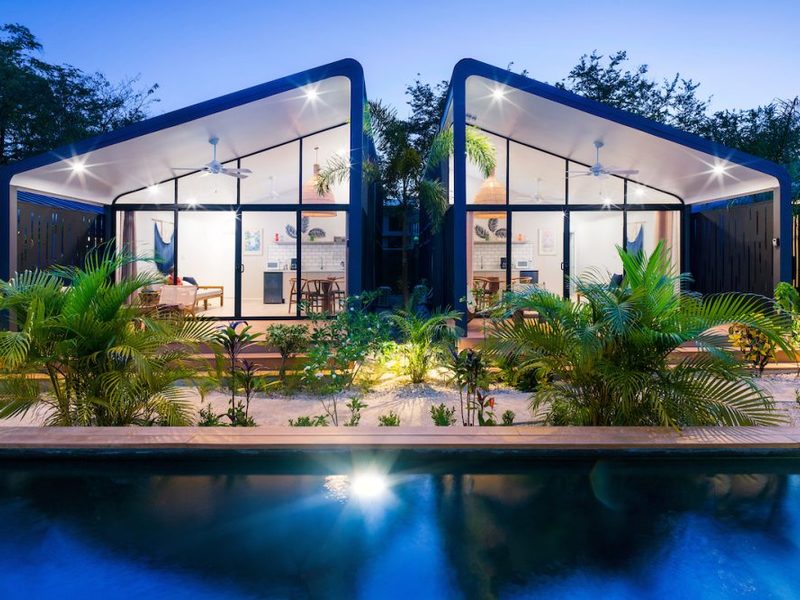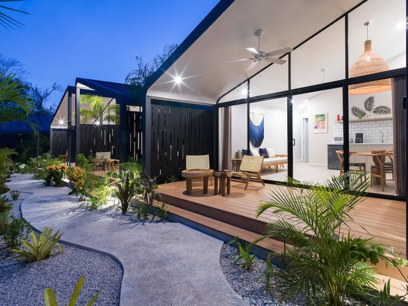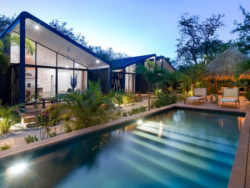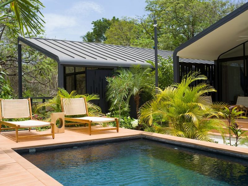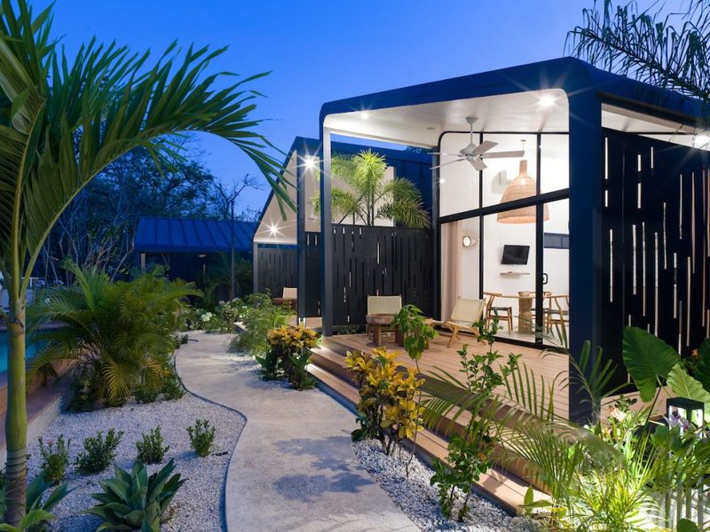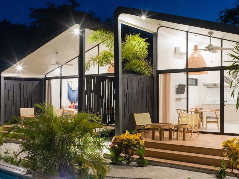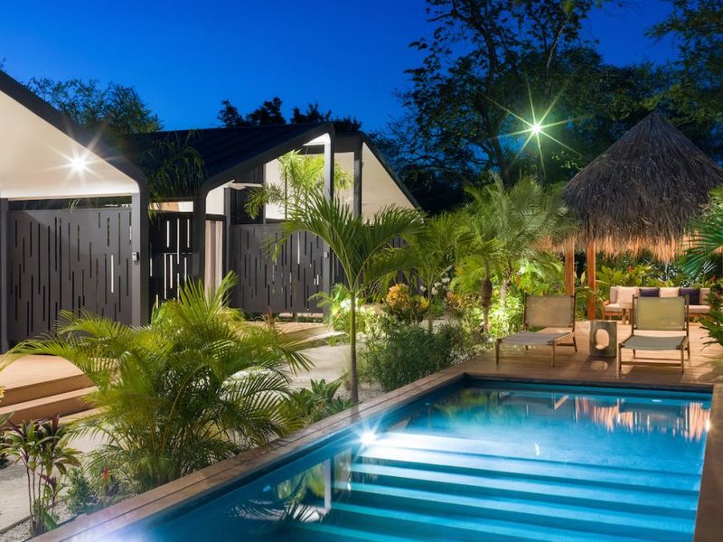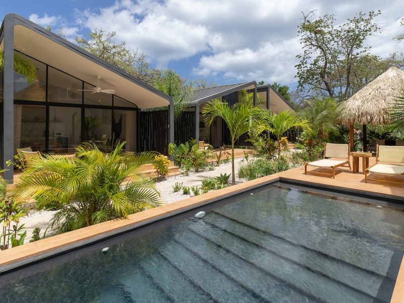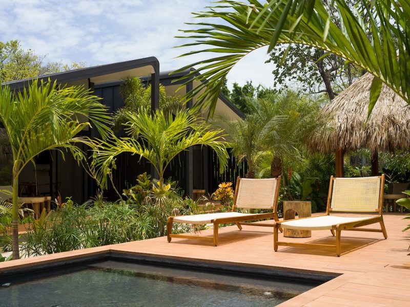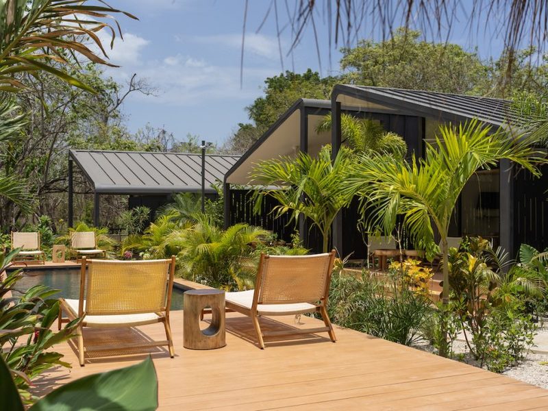 Welcome to the brand new Favela Chic, five personal modern bungalows nestled in the jungle and walking distance to the beach. Relax in the quiet Langosta neighborhood that lies next to Las Baulas National Park, featuring world class surfing and beaches that are quiet and away from the hustle and bustle of Tamarindo Beach – but only a 10 minute walk to the nightlife and restaurants that make Tamarindo famous.