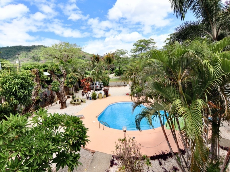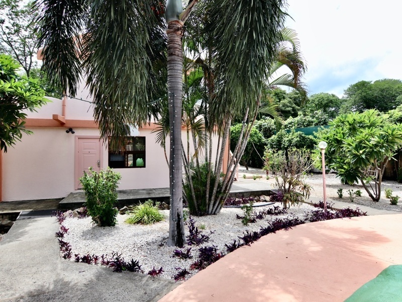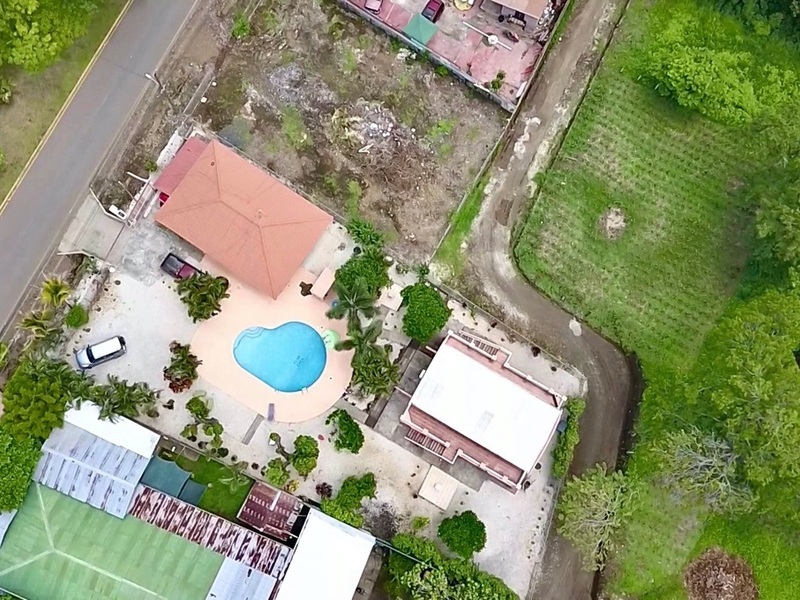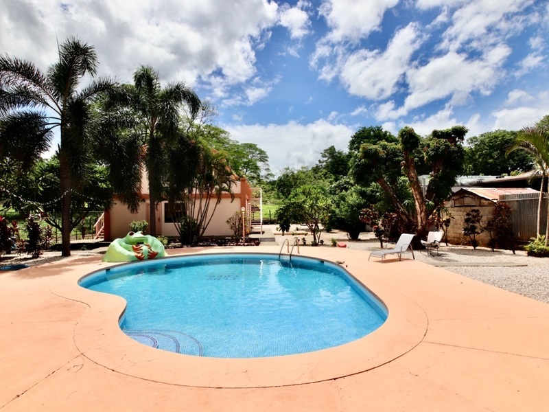 Landscaped with mature fruit trees and palms, fully fenced, large pool, BBQ area, plenty of parking and bodega for storage. 28.65 meters / 94 feet Playas del Coco main road frontage