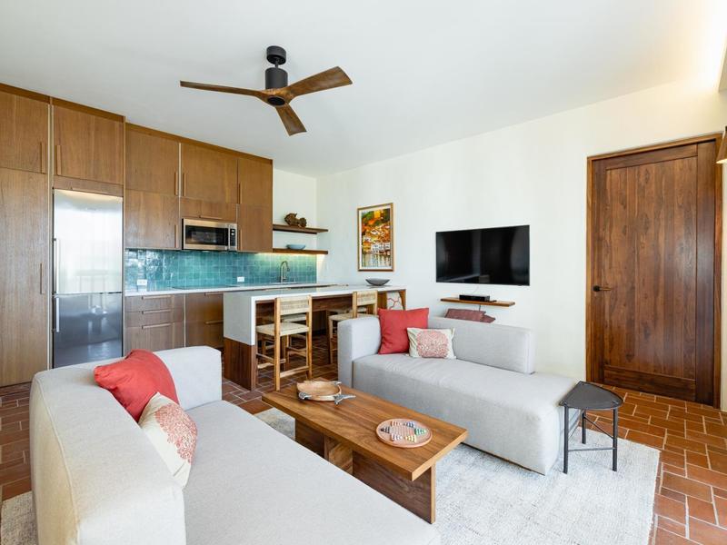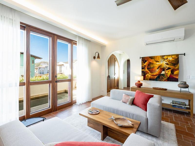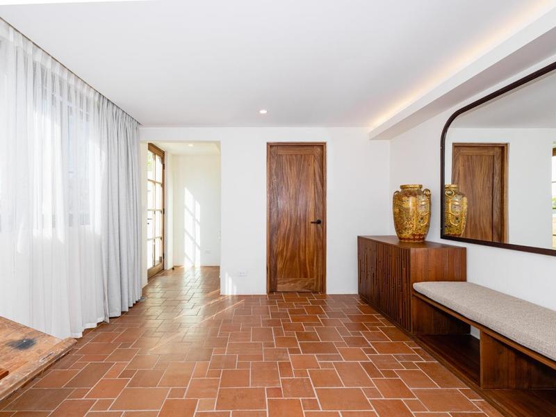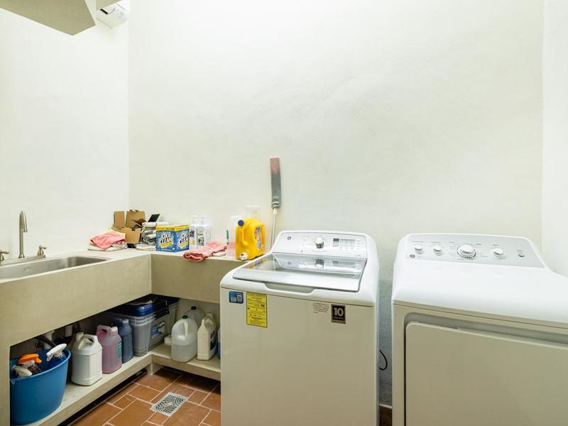 Casa Los Arcos features several distinctive architectural aspects, including Coralina natural stone floors, Saltillo tile, and vaulted ceilings. Outside, on the lower level, you'll find a one-of-a-kind bonus room with a separate door and its own half bath, which may easily be utilized as a yoga studio, office, or additional bedroom.