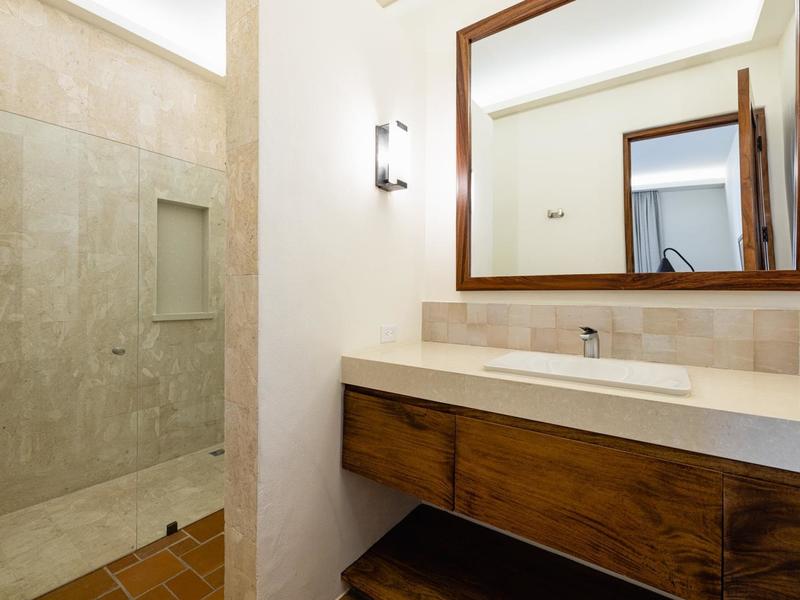 The master bedroom has an expansive walk-in closet, and the master bathroom has dual wood floors, marble countertops, and a large soaking tub. There are three covered balconies, two of which are off the master bedroom. The largest balcony space includes a seating and lounging area as well as a unique Japanese soaking tub. Casa Los Arcos is available for $3,375,000 fully furnished, (bespoke) after Furnished, and turn-key.