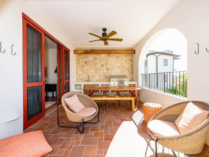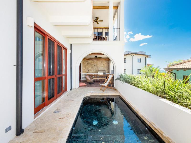 You approach Casa Los Arcos through the Tree of Life gate as you stroll along Calle Virginia, and you are immediately welcomed to the peaceful outdoor covered patio with a plunge pool, BBQ, and sitting area.