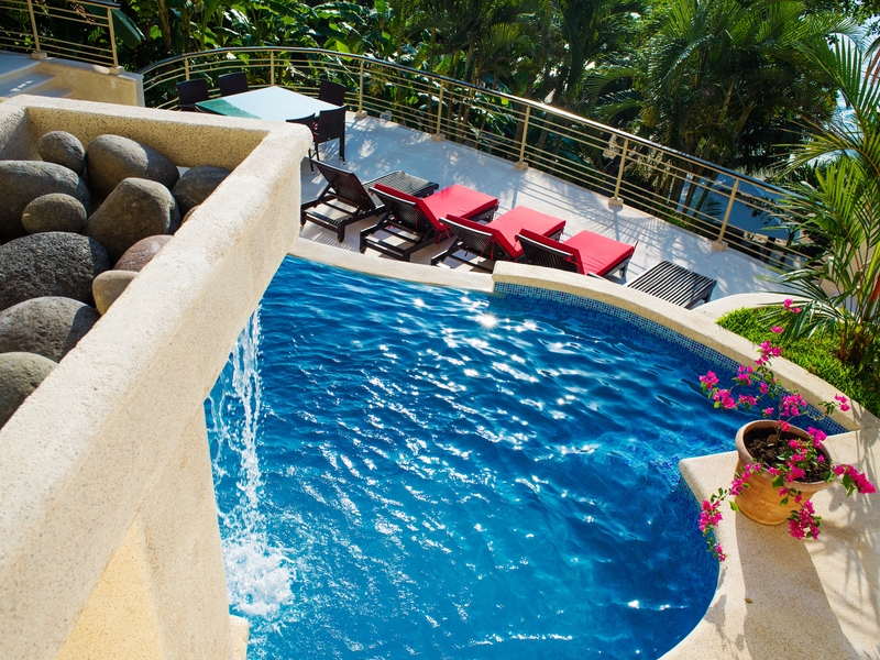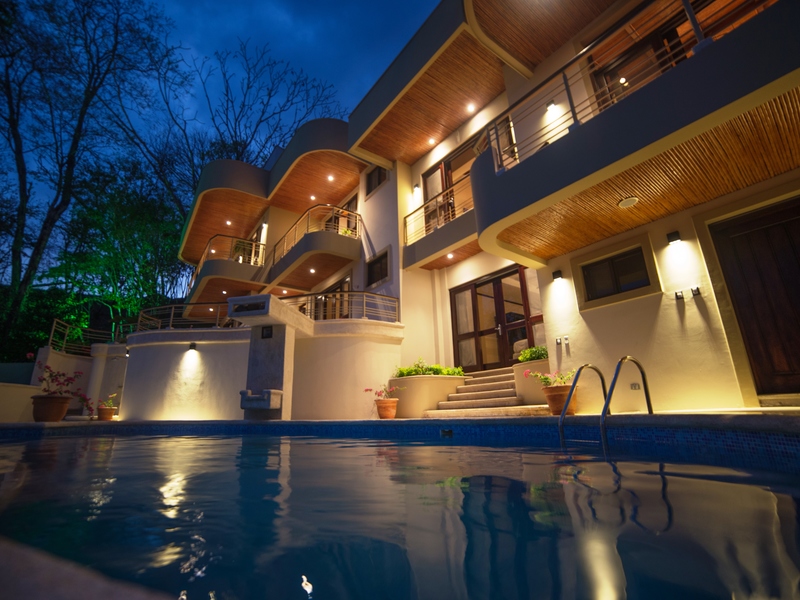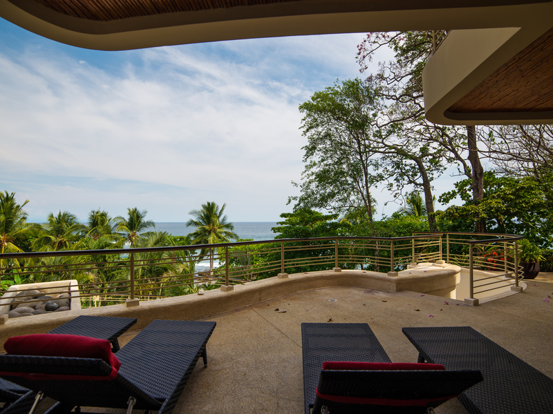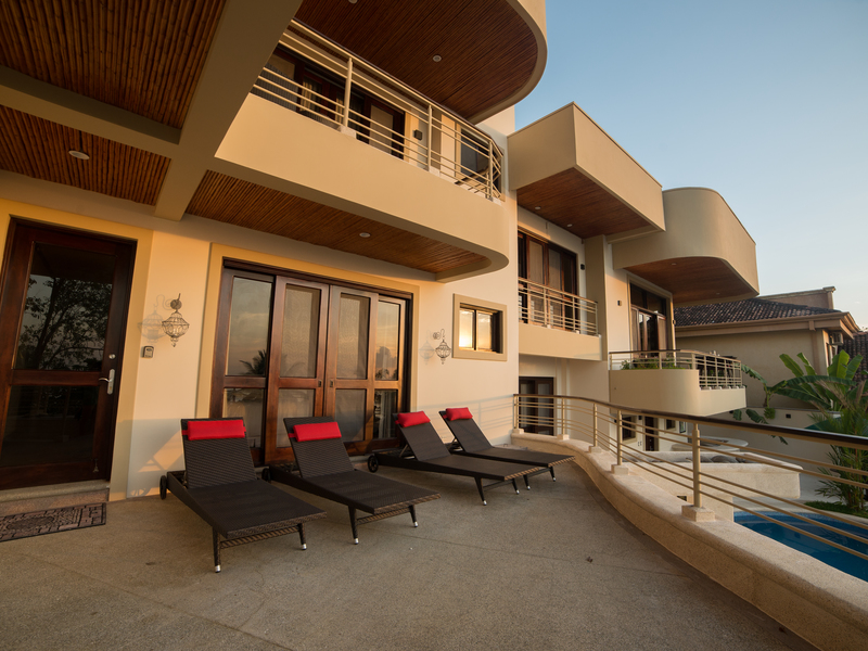 An Exceptional Modern Beachfront 3 Story Luxury Villa with 6 Private Bedrooms, 6.5 Baths & Large Pool -That Touches the Sand – In a Private Golf Resort Community Designed by a renowned architect, this Villa offers gorgeous blue water panoramic views from every room in the house. The separate bedrooms assure privacy and solace while being just steps from the lovely pool. From the pool there a just a few more steps to the sandy beach. The quality of construction and use of exotic hardwoods is obvious throughout the home. There are separate social areas for BBQs as well as a large living room for larger gatherings. The roomy chef’s is equipped with the most modern equipment of the highest quality. This gated community has its own water supply and 9-hole golf course and a beachfront luxury hotel. The restaurant in the Club House is excellent, overlooking the beach and sea. Nearby towns offer all the services such as hardware stores, supermarkets, gas stations, clinics, restaurants and much more Each bedroom has its own private bathroom and outdoor veranda to enjoy the ocean views. The photos do not do it justice. This house is a dream of comfortable living that looks out over unbelievable ocean vistas and the sound of the waves on the shore. People who visit this house just pause and take in the lovely feeling of being on the edge of the sea and surrounded by luxury. Here is a quick slide show video of the property and separate photos below –