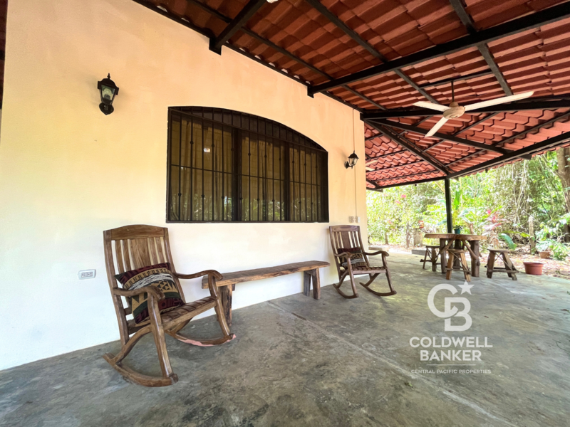 The main house is sturdily built, has 2 bedrooms, each with A/C, a full bathroom with wheelchair accessible wide shower, a large open kitchen and living room, ceiling fans, a covered wrap-around spacious porch with ceiling fans, a flat roof with roof garden, with the possibility of adding a second storey.