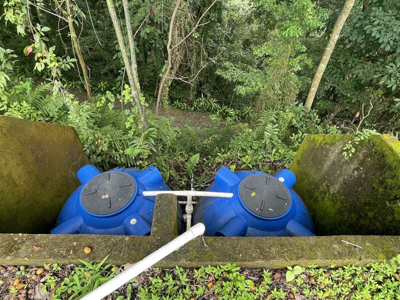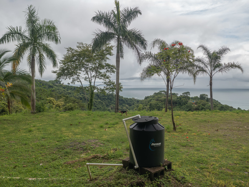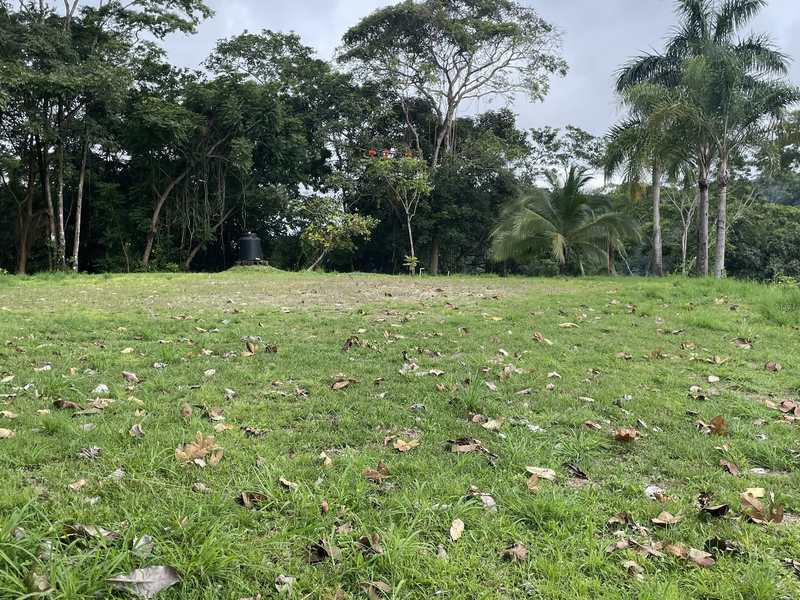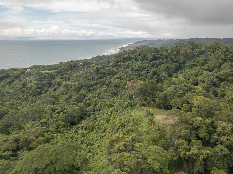 The land measures a total of 15,859 m2. It has a very large flatland which is perfect for building one large home or various smaller homes. Currently the land holds three large water tanks that are filled by the current owner’s well that resides on the property below. The lower level of the property offers an additional ocean view site with clearance to the overgrown jungle flora. The hilltop location provides a refreshing breeze at all times and an expansive aerial view of the jungle below.