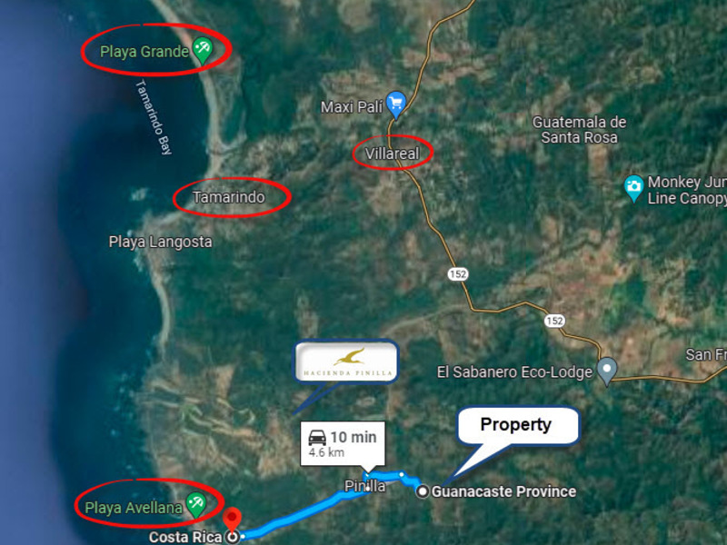 Property of 5,000 squared meters (half an hectare), located in the growing community of Playa Avellanas in San José de Pinilla. The land is completely flat, does not flood in the rainy season and has beautiful local trees. The 1.24-acre land is located in a growing community of expats and locals who are planning to build the house of their dreams just 10 minutes away from one of the best beaches and surfing spots in Guanacaste.