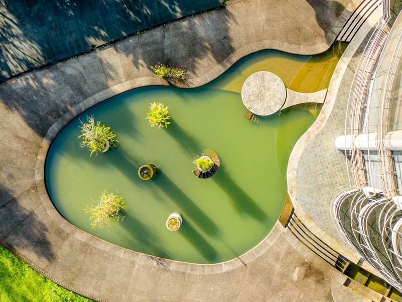 In addition to the pools, fountains, and garden areas around the main house, there are also guest and staff housing infrastructure in place, as well as full-time rangers who focus on wildlife and watershed conservation efforts. The magical forested areas of the property seamlessly intertwine with large areas of the property that were formerly cattle pasture, opening up the possibility for a mix of residential, wellness, institutional/educational, or resort development.