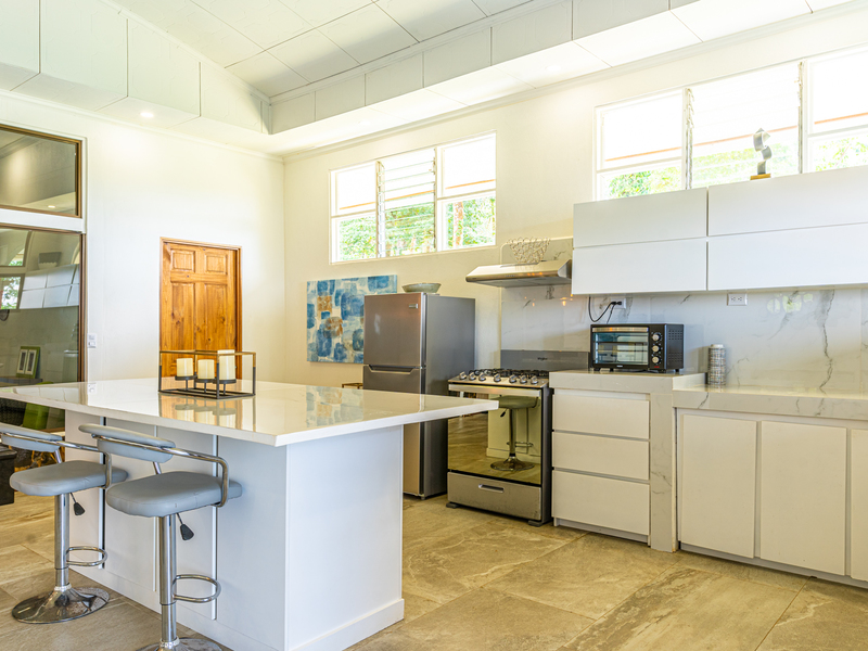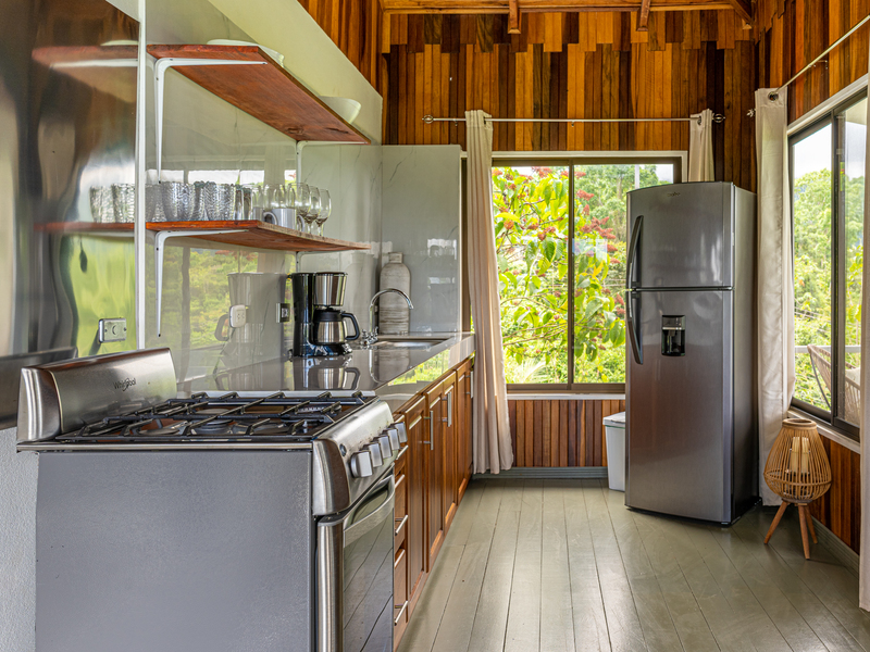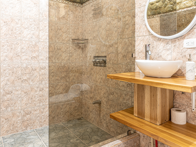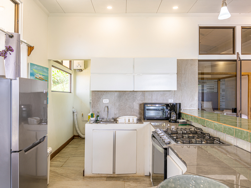 The brand new pool area holds a covered rancho and jacuzzi completed with coralina tile, nestled at the back of the property. Then there are 2 newly renovated individual cabins resting at the front of the property, with beautiful views toward the ocean and mountains, each with full bath, terrace and private laundry. Additionally there is a covered open air pavilion, with bathroom, kitchen area, and beautiful views, which could be turned into a common area with BBQ or for yoga, or enclosed in to create another full unit for rental. The caretakers live onsite, offering full maintenance and cleaning of the property, as well as guest services when required.