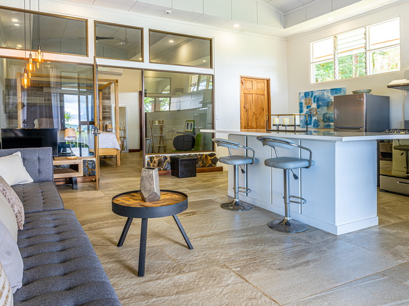 Comprised of multiple units, the first being a duplex with 2 one bedroom apartments, each fully renovated and equipped with full kitchen, bedroom, bathroom and laundry, as well as ocean view terraces. The second, is a 2 bedroom home tucked away along the stream that borders the property which is also newly renovated with full kitchen, laundry and 1 full bath. The 8 bedroom hotel building sits in the middle of the property and has started renovations, with 3 ocean view rooms ready for rental. Each hotel room enjoys beautiful views over the ocean or neighboring jungle, a mini fridge, full bath, terrace and either 1 or 2 beds.