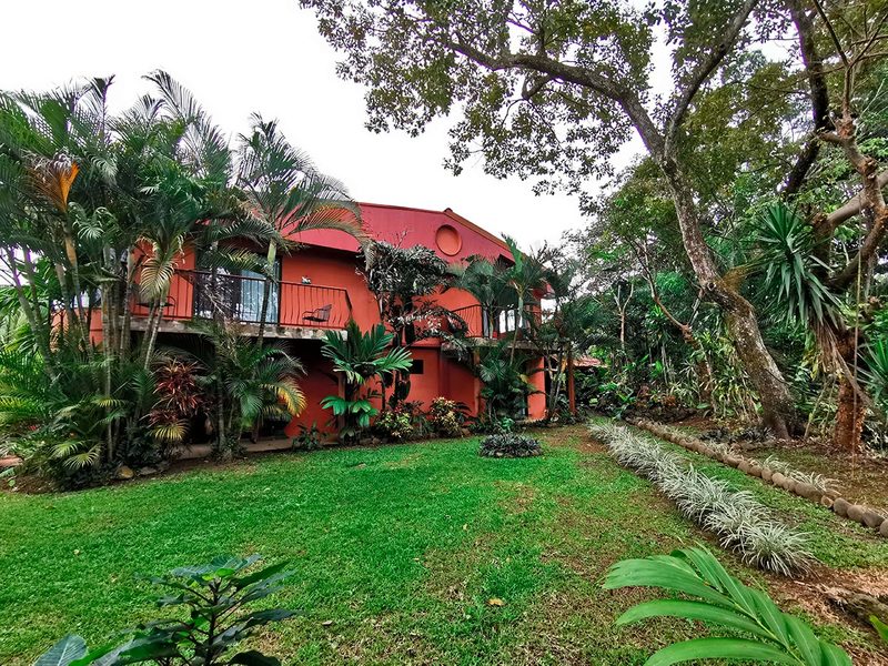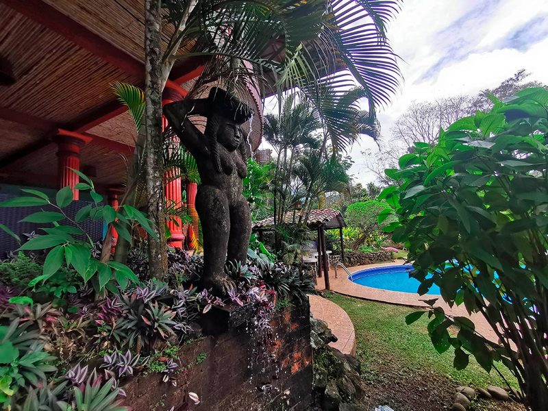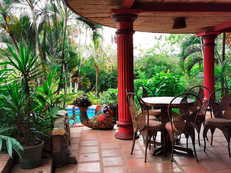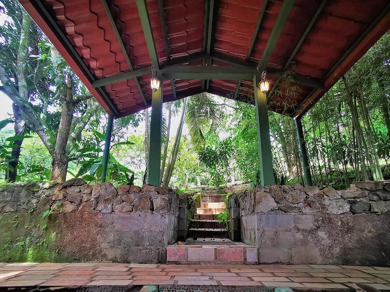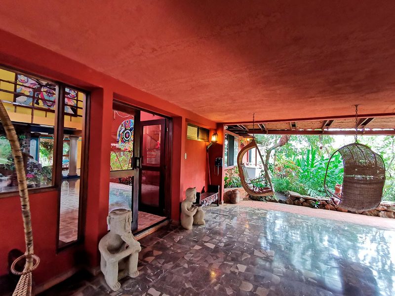 Immediately you will notice the main building, where a large covered terrace, surrounded by greenery, like tabacones (Anthurium salvinii), Cacho de Venado (Platycerium bifurcatum) and Machiguá (Petrea Volubilis) welcomes all visitors. It can be immediately perceived as all the green coverage of the place promotes a lot of freshness and works as a beautiful display of the natural wonders of this place.